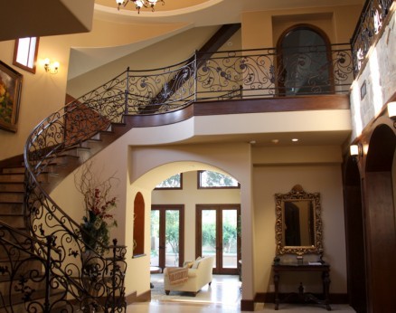 This beautiful Tuscan home has many custom features including this one-of-a-kind Iron Staircase design.