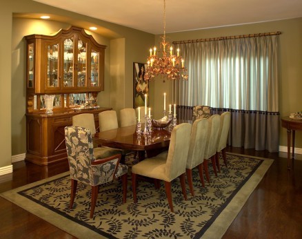 Dining Room with custom-designed China Cabinet and Antique Chandelier.
